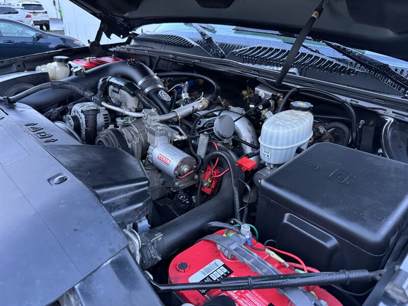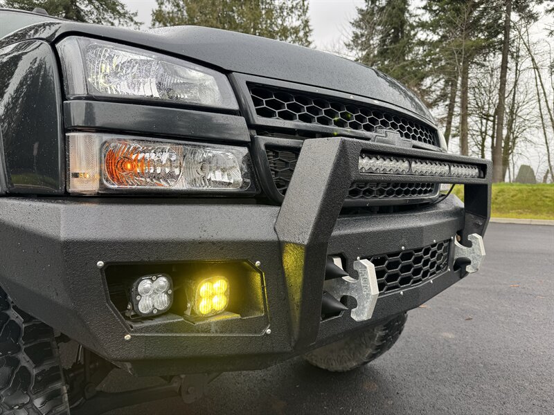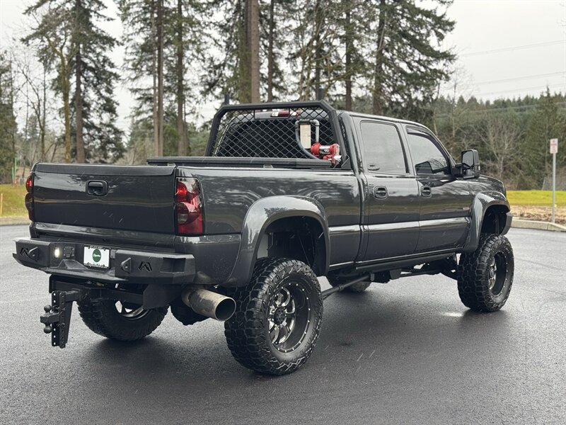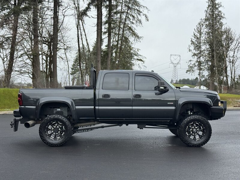 Signature Motor Co is pleased to offer this 2005 Chevrolet Silverado 2500 LT Crew Cab 4x4 finished in Dark Gray Metallic with Dark Charcoal interior. Powered by the factory Duramax 6.6L Turbo V8 (300 hp, 520 lb-ft) paired with a heavy-duty automatic transmission and four-wheel drive. Factory equipment includes LT trim exterior accents, alloy wheels, power mirrors/windows/locks, cruise control and tilt steering, air conditioning, AM/FM radio with CD player, cloth seating for up to six with center storage, locking tailgate and tow-prep with integrated wiring, ABS and front airbags. Below 185,000 miles (averaging under 9,000 miles/year) and in excellent overall condition. It is fully built with lots of extra goodies such as 7-9 inch Cgnito lift kit 37x13.5x20 falken wild peak rt tires installed last year, Brand new fox 2.0 shocks installed last year, Kyrptonite control arms and tie rods, Air bags in rear with compressor, Flog steel front bumper sprayed with line-x, Baja designs amber fog lights and white fog lights with 30 inch Baja designs lightbar, Fab fours rear steel bumper sprayed with line-x, Protech tool box and headache rack sprayed with line-x, 36 gallon aux fuel tank, 5 stage efi live, tuned and deleted, Egr delete, S&b cold air intake, S&b turbo mouthpiece, Mbrp 3 inch downpipe and 5 inch Mbrp full exhaust with 7 inch Mbrp tip, S&b 62 gallon fuel tank with fass fuel system, Mishimoto trans cooler, Bd built Allison transmission, Bd rear diff cover and gears, Amp steps, Alpine Stereo with wireless Apple Carplay and Android, Edge ct3 monitor, 2 -12 inch subs w/ custom box behind seat, 2 amps under seat, New carbon fiber door speakers and tweaters, Alpine head unit, Battery for sound system under rear seat, Drone mobile remote start, Bulletproof 10 inch drop hitch Custom reinforced tow hitch, and B&W gooseneck set up. This truck has also had lots of service including headgaskets, thermostat, water pump, wheel bearings, u joints, driveshaft rebalanced, transmission and differential fluids, heavy duty alternator all done last year.