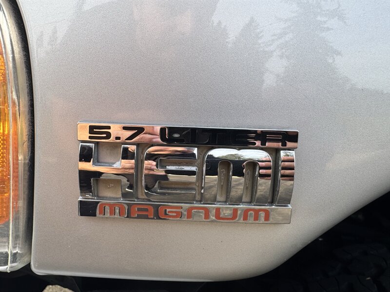 Signature Motor Co. is pleased to offer this ONE OWNER 2005 Dodge Ram 1500 SLT 4dr Quad Cab 4x4 in Bright Silver Metallic Clearcoat with Dark Slate Gray interior. Powered by the factory 5.7L HEMI V8 (345 hp, 375 lb-ft) paired with a 5-speed automatic transmission and full-time 4x4 drivetrain. Factory and included equipment: Sport Design/ OFF ROAD Package; AM/FM radio with in-dash aftermarket CD player and steering-wheel audio controls; 4-wheel ABS and daytime running lights with fog lights; limited-slip rear differential; alloy wheels; K&N Cold Air Intake, trailer hitch; power door locks and power-adjustable driver seat; front split-bench seating. This truck has under 176,000 miles (averaging less than 8,000 miles per year), EPA fuel economy approximately 12 MPG city and 16 MPG highway, and is in great overall condition.