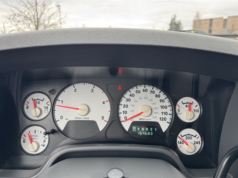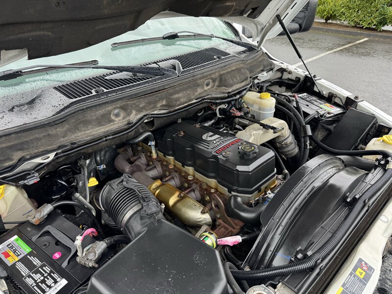 Signature Motor Co. is proud to offer this iconic 2006 Dodge Ram 3500 SLT Heavy Duty Short Bed Mega Cab, powered by a Cummins 5.9L Turbo Diesel I6 (325 hp, 610 lb-ft) with a 4-speed automatic. Two-tone exterior in Bright White Clearcoat/Bright Silver Clearcoat Metallic with a Medium Slate Gray interior; excellent overall condition and below 155,000 miles (averaging under 8,000 miles/year). Factory equipment includes a heavy-duty chassis and suspension tuned for towing and payload, reinforced driveline and diesel-specific cooling, full instrumentation (tachometer, volt/oil/temp gauges), cruise control, air conditioning, power steering, power windows and door locks, tilt steering, dual front airbags and four-wheel anti-lock brakes, center console and rear bench seating. Optional items included: AM/FM/Cassette/CD changer/MP3 audio, electrochromatic rearview mirror, keyless entry, power adjustable pedals, bed liner, daytime running lights, front fog lights, power driver seat, premium cloth seats, anti-theft alarm, 17" alloy wheels wrapped in BFG K02 Tires, manual sliding rear window and rear defogger.