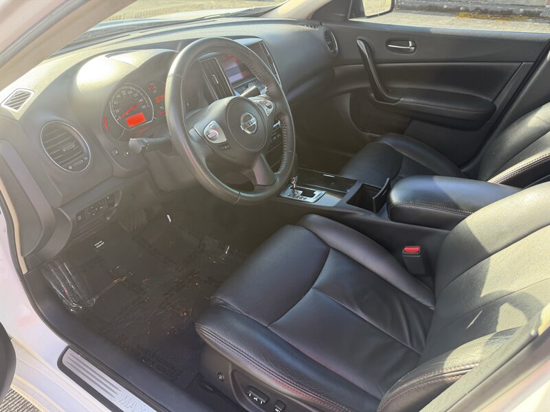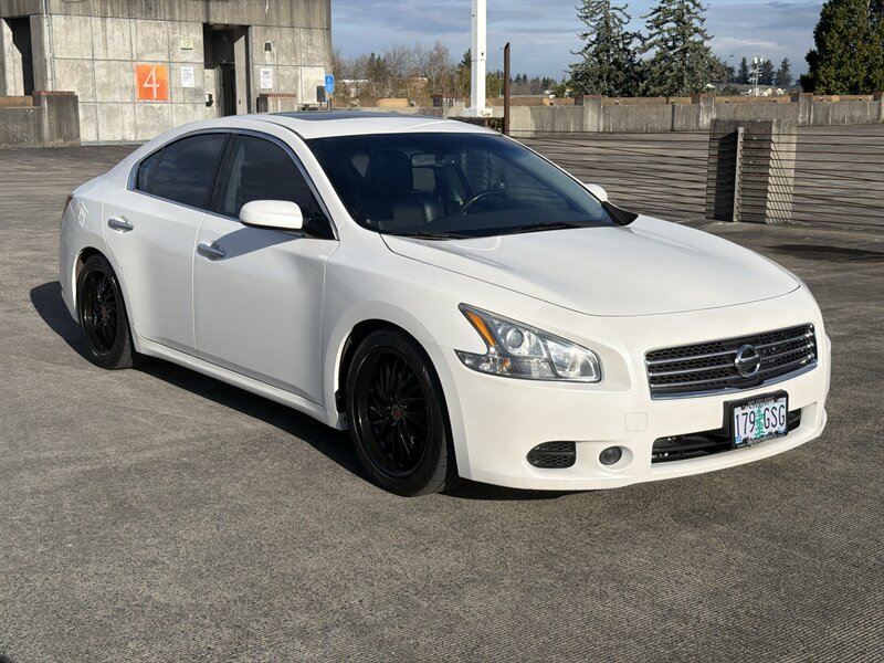 Signature Motor Co. is pleased to offer this very well serviced 2009 Nissan Maxima 3.5 S in Winter Frost with Black leather interior, powered by a 3.5L V6 producing 290 hp and 261 lb-ft; excellent overall condition with under 117,000 miles (averaging less than 7,000 miles per year). It gets great Fuel economy at 19 MPG city / 26 MPG highway. Factory equipment includes leather seating surfaces with power-adjustable front seats, dual-zone automatic climate control, steering-wheel audio and cruise controls, AM/FM/CD/MP3 audio with auxiliary input, remote keyless entry and power windows/locks/mirrors, alloy wheels and fog lights, automatic headlights, ABS with traction and stability control, multiple airbags (front, side and curtain) and tire pressure monitoring. Buy with confidence this vehicle was also just inspected and serviced 500 Miles ago at Nissan of Portland and is good to go.
