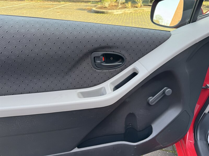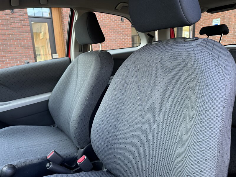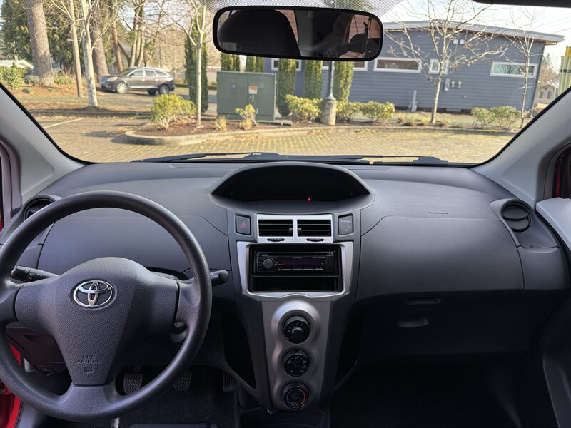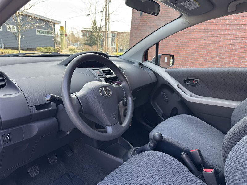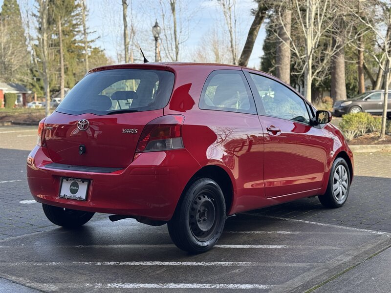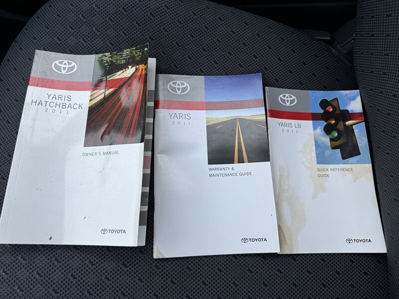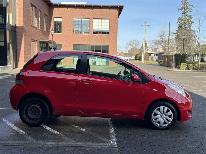 Signature Motor Co. is offering this 2011 Toyota Yaris (5 speed manual) powered by a 1.5L I4 (106 hp, 103 lb-ft), finished in Absolutely Red with a Dark Charcoal interior. Includes Convenience Package, Power Package with steel wheels, and a carpet floor/cargo mat set; well maintained with under 112,000 miles (averaging <7,000 miles/year) and EPA-rated 29 MPG city / 36 MPG highway. Factory-standard equipment includes a 5-speed manual transmission, cloth seating for five with a folding 60/40 rear seat, air conditioning, tilt steering, power steering, AM/FM/CD audio with auxiliary input, dual front airbags and side-impact protection, ABS brakes and tire pressure monitoring — the vehicle is in great overall condition.
