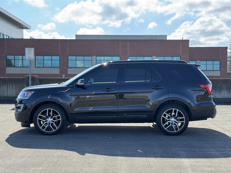 Signature Motor CO. is pleased to offer this 2016 Ford Explorer Sport — Shadow Black exterior with Ebony Black interior and red accent stitching. Powered by a 3.5L EcoBoost twin-turbo V6 (365 hp, 350 lb-ft), EPA-rated 16 MPG city / 22 MPG highway. Includes Equipment Group 400A and 401A plus optional All-Weather Floor Mats, Hands-Free Power Liftgate, Splash Guards, Daytime Running Lights, LED Fog Lamps, and Dual Panel Moonroof. Factory-installed features include leather-trimmed seating surfaces with heated front seats, dual-zone automatic climate control, keyless entry/ignition, a factory infotainment system with Bluetooth and steering-wheel audio controls, rearview camera, power windows/locks/mirrors, alloy wheels, anti-lock brakes, traction and stability control, and full airbag protection. Vehicle is in excellent overall condition.