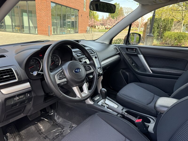 Signature Motor Co. is pleased to offer this fully Serviced ONE OWNER 2017 Subaru Forester 2.5i Premium AWD — 2.5L H4 producing 170 hp and 174 lb-ft, Crystal Black Silica exterior with Black interior, EPA-rated 26 MPG city / 32 MPG highway. Vehicle is in excellent overall condition. Factory-standard features include Subaru’s Symmetrical All-Wheel Drive with a Lineartronic CVT, anti-lock brakes with electronic brakeforce distribution, stability and traction control, front/side curtain airbags and tire pressure monitoring for safety, plus a rearview camera. Convenience and comfort features include power windows and locks, remote keyless entry, cruise control, tilt/telescoping steering wheel, Bluetooth hands-free and audio streaming with USB/AUX inputs, a multi-speaker audio system, cloth seating with 60/40 split-fold rear seats and roof rails. The All-Weather Package adds cold-weather conveniences such as heated front seats and a windshield wiper de-icer. Included optional accessories: Body Side Molding Kit (Crystal Black Silica), Door Edge Guards (Crystal Black Silica), Rear Bumper Cover, Splash Guard Kit, and Aero Crossbar Set.